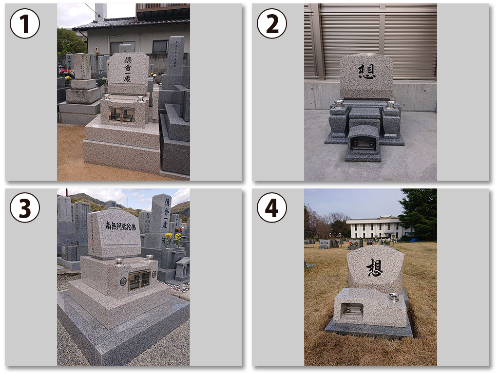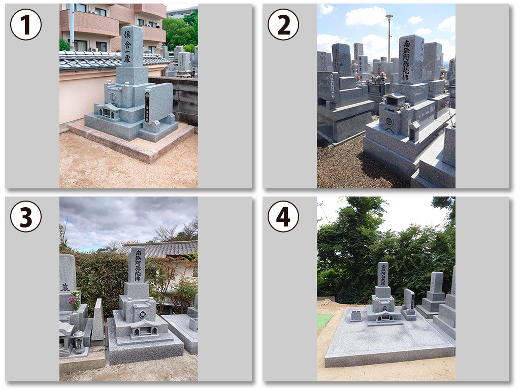 写真③が庵治石細目、写真④が庵治石中目となります。
